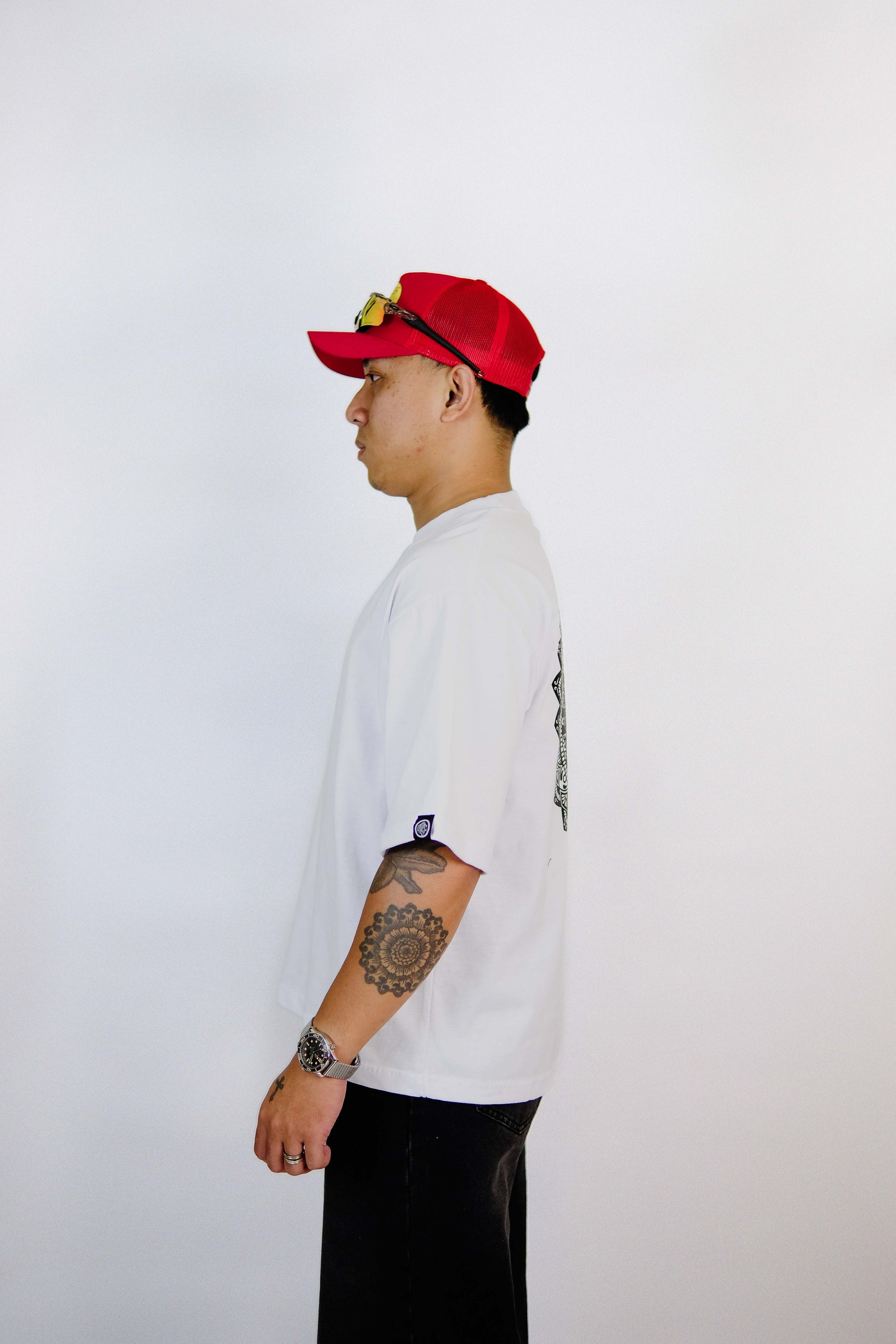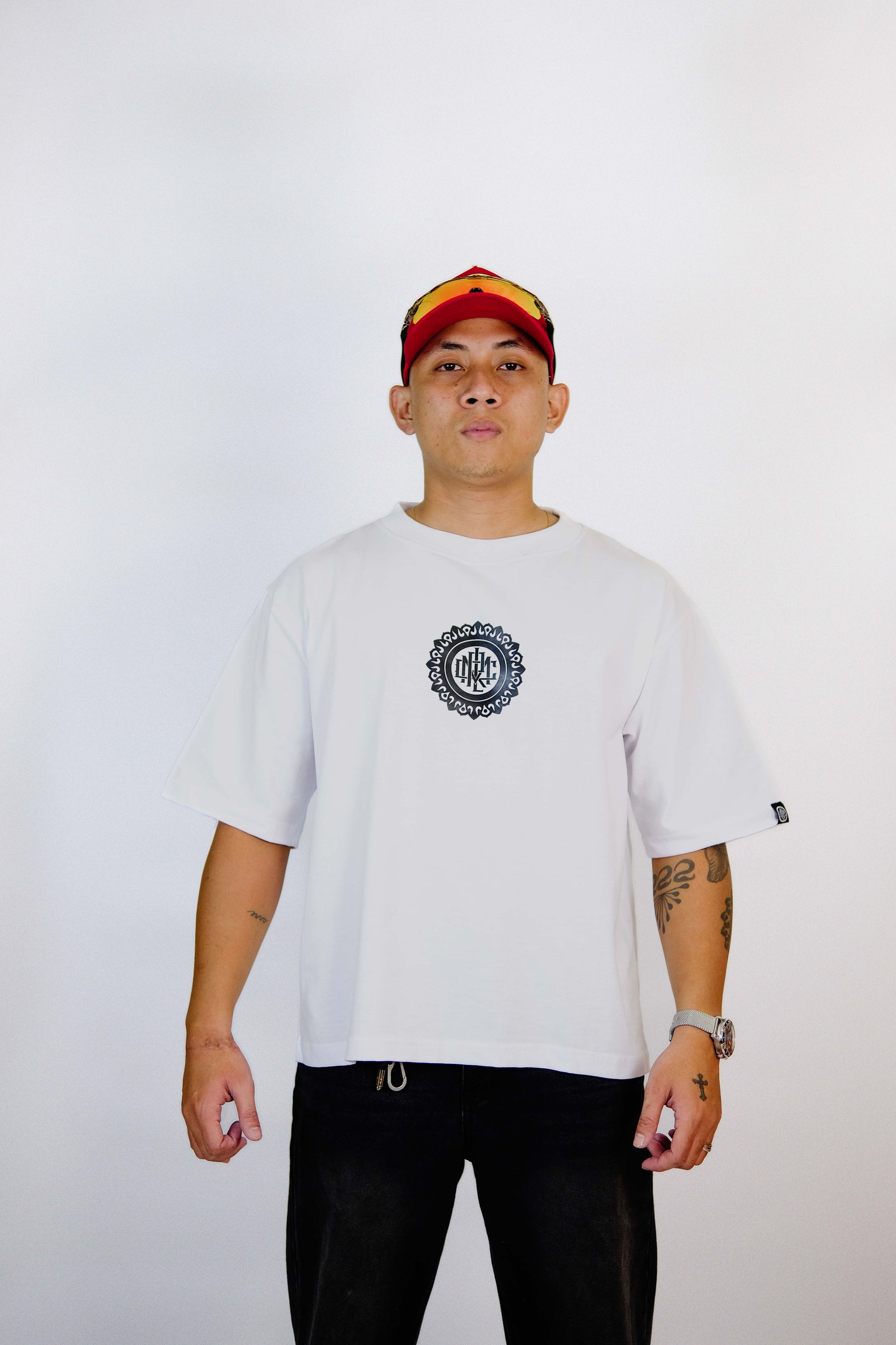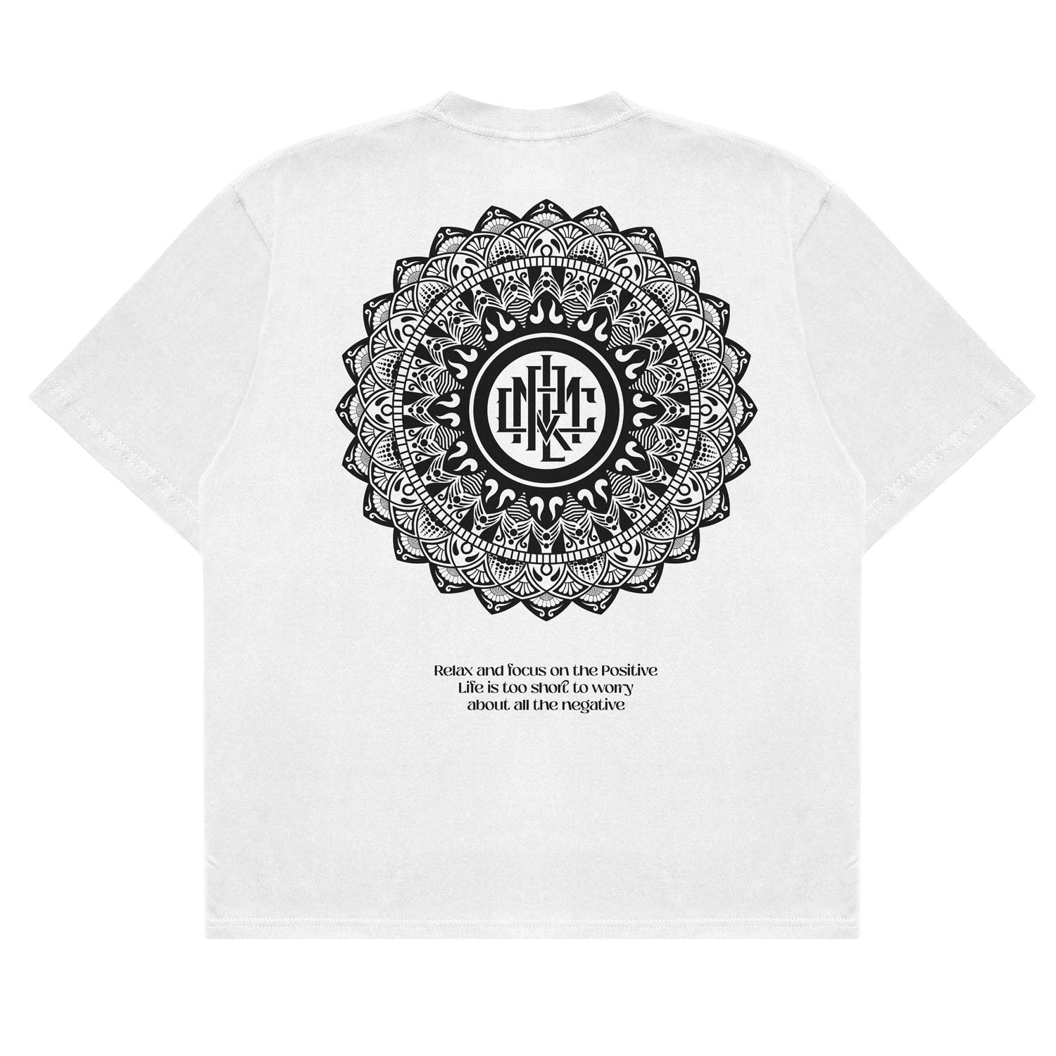 Elevate your wardrobe with the MANDALA WHITE V1 BOX TEE. This oversized fit crew neck tee offers peace for your mind and clarity of thoughts. Feel alive in every step. It's not just clothing; it's a statement piece.